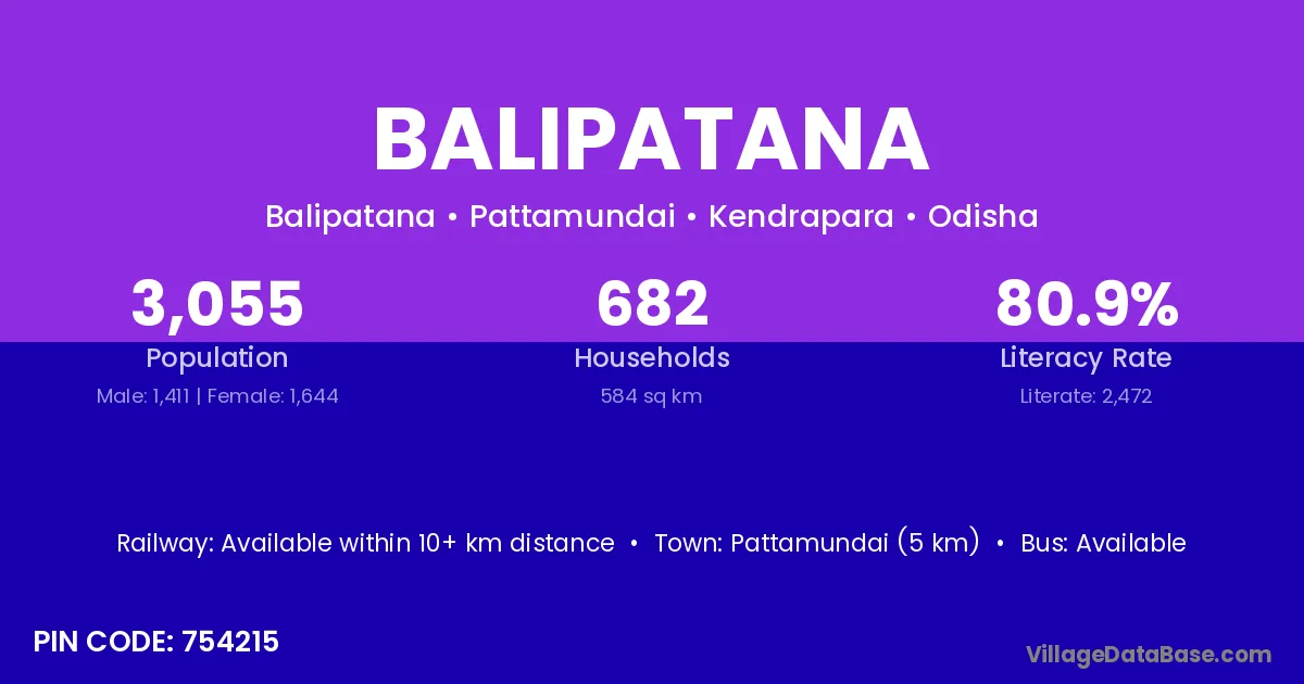 Bhadrak (38 km) is the nearest town to Balipatana village for major economic activities and is located approximately 38 km away.