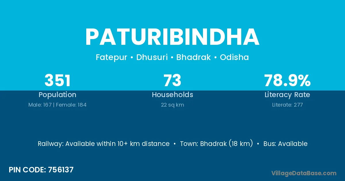 Bhadrak (18 km) is the nearest town to Paturibindha village for major economic activities and is located approximately 18 km away.