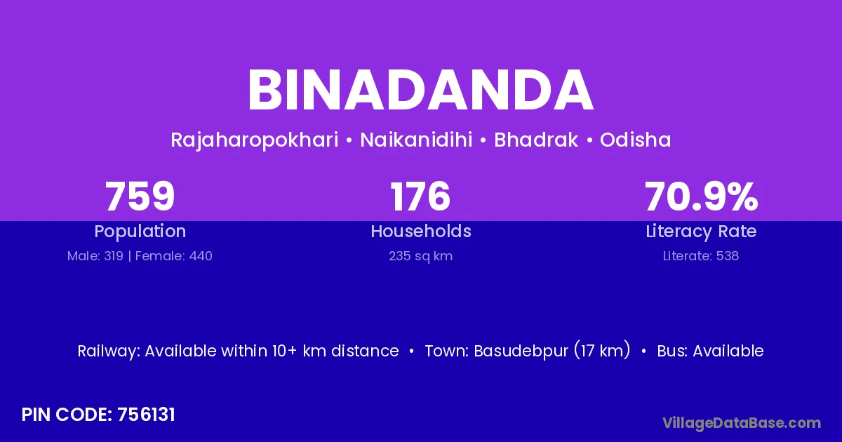 Binadanda village has a total population of 759 people, of which 319 are males and 440 are females.