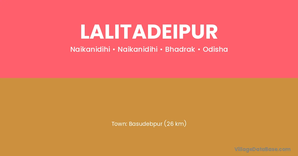 Basudebpur (26 km) is the nearest town to Lalitadeipur village for major economic activities and is located approximately 26 km away.