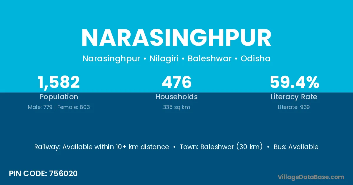 Bhadrak (32 km) is the nearest town to Narasinghpur village for major economic activities and is located approximately 32 km away.