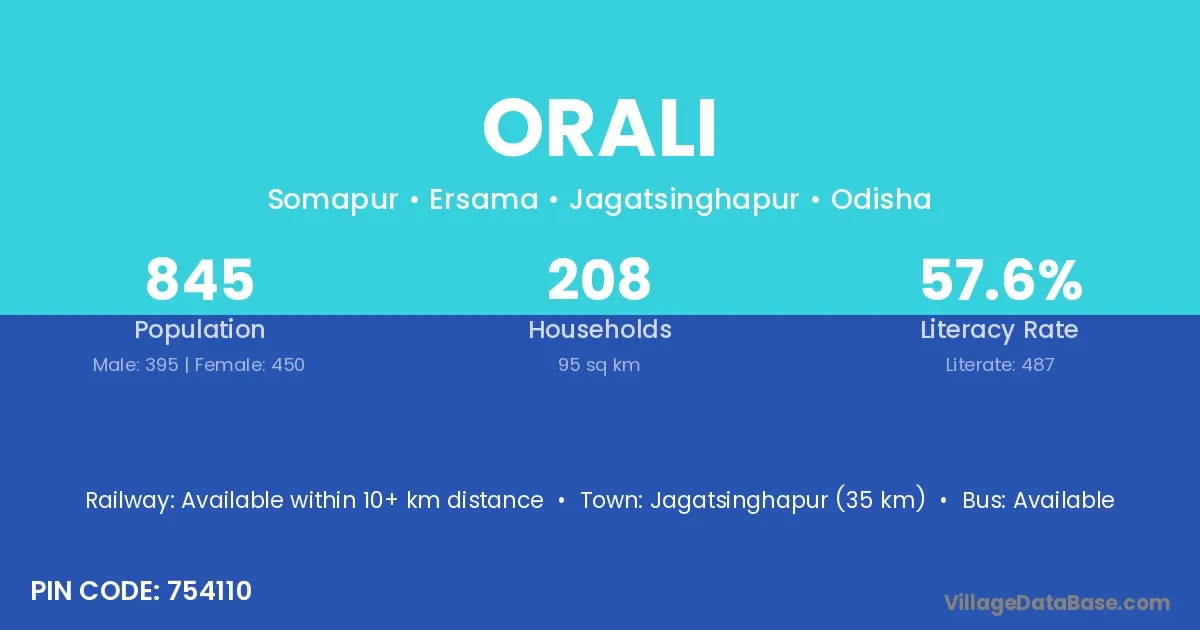Bhadrak (25 km) is the nearest town to Orali village for major economic activities and is located approximately 25 km away.
