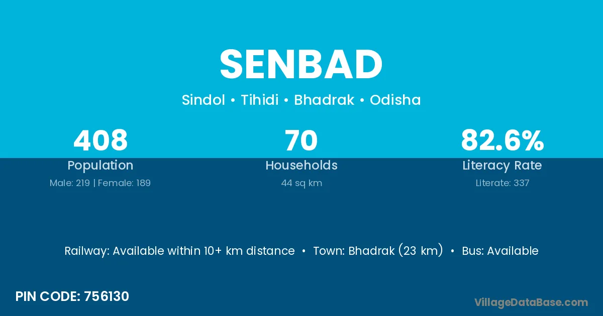 Bhadrak (23 km) is the nearest town to Senbad village for major economic activities and is located approximately 23 km away.