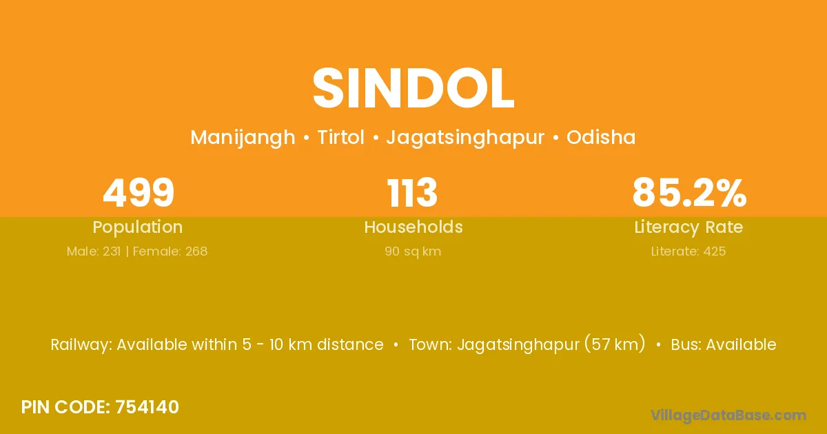 Bhadrak (27 km) is the nearest town to Sindol village for major economic activities and is located approximately 27 km away.