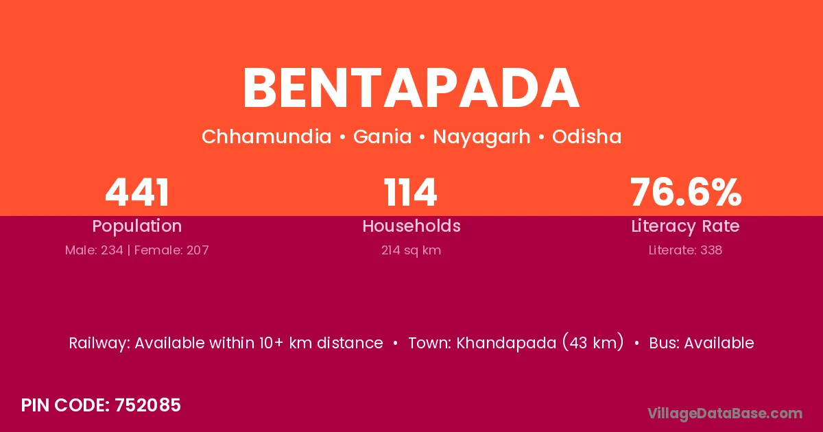 Athagad (4 km) is the nearest town to Bentapada village for major economic activities and is located approximately 4 km away.