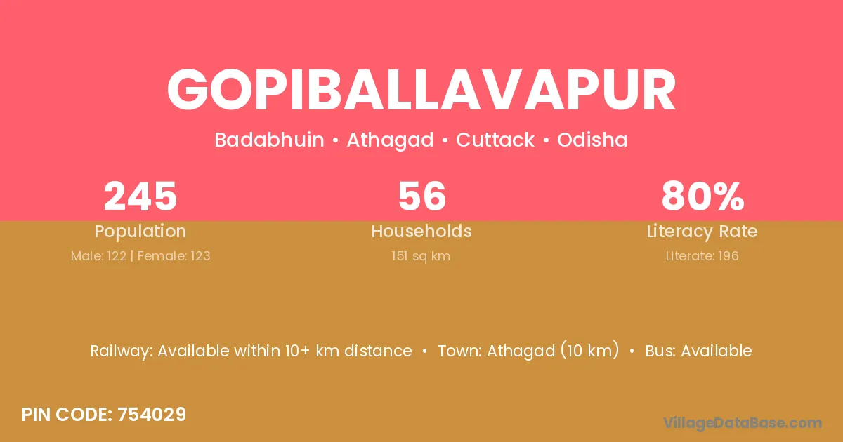 Gopiballavapur village has a total population of 245 people, of which 122 are males and 123 are females.