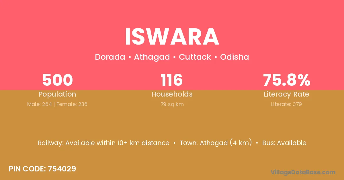 Iswara village has a total population of 500 people, of which 264 are males and 236 are females.
