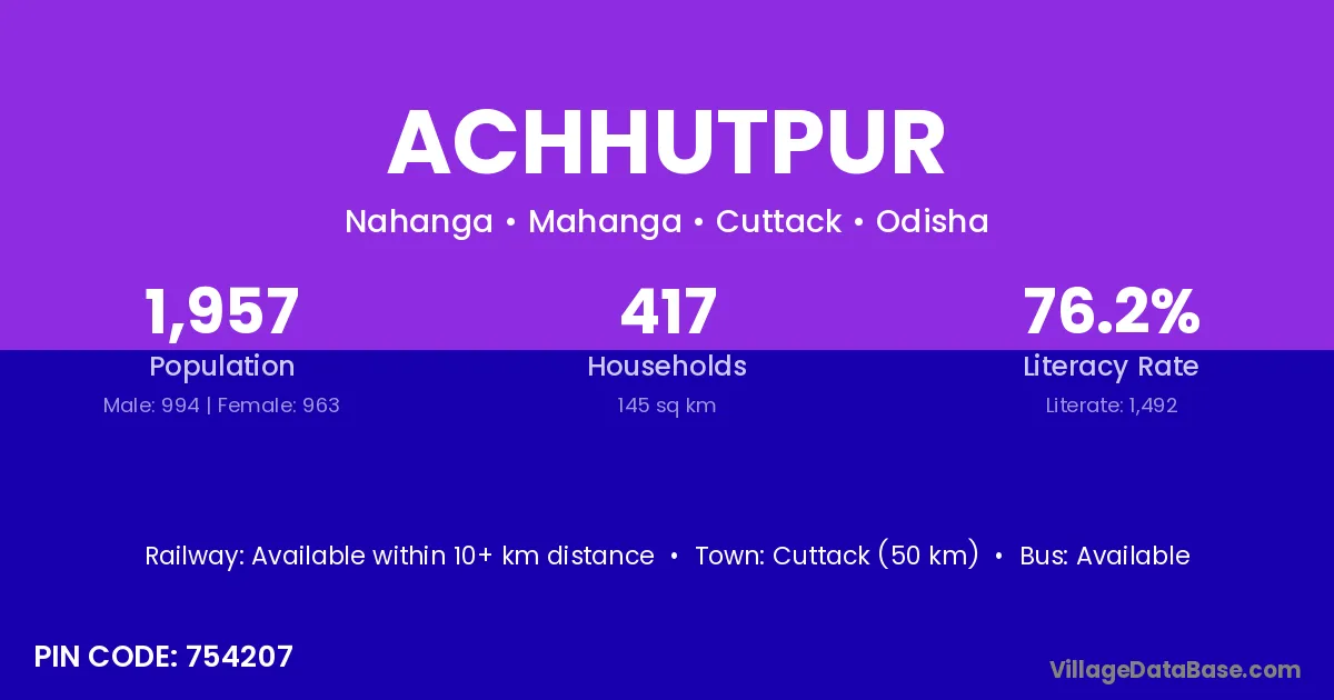 Badamba (5 km) is the nearest town to Achhutpur village for major economic activities and is located approximately 5 km away.