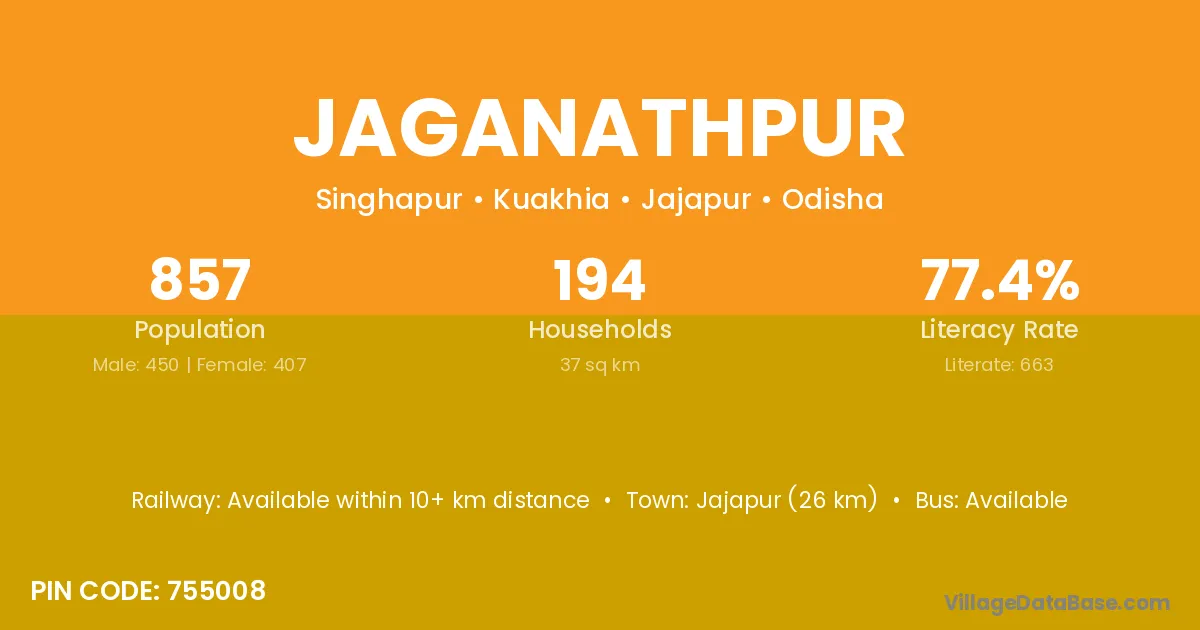 Badamba (6 km) is the nearest town to Jaganathpur village for major economic activities and is located approximately 6 km away.