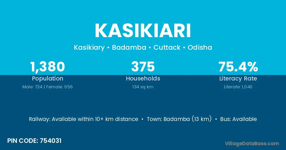 Badamba (13 km) is the nearest town to Kasikiari village for major economic activities and is located approximately 13 km away.