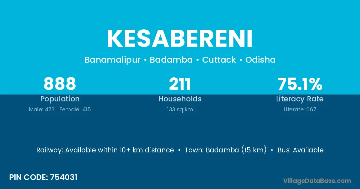 Kesabereni village has a total population of 888 people, of which 473 are males and 415 are females.