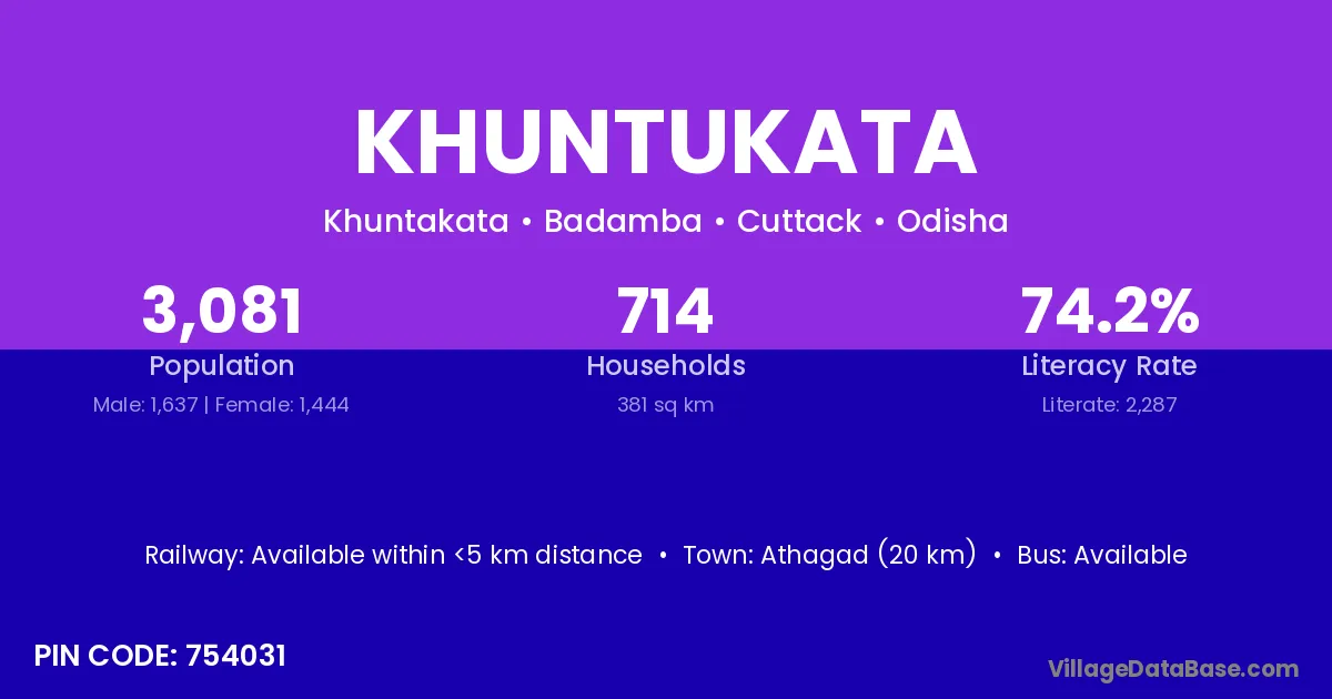 Athagad (20 km) is the nearest town to Khuntukata village for major economic activities and is located approximately 20 km away.