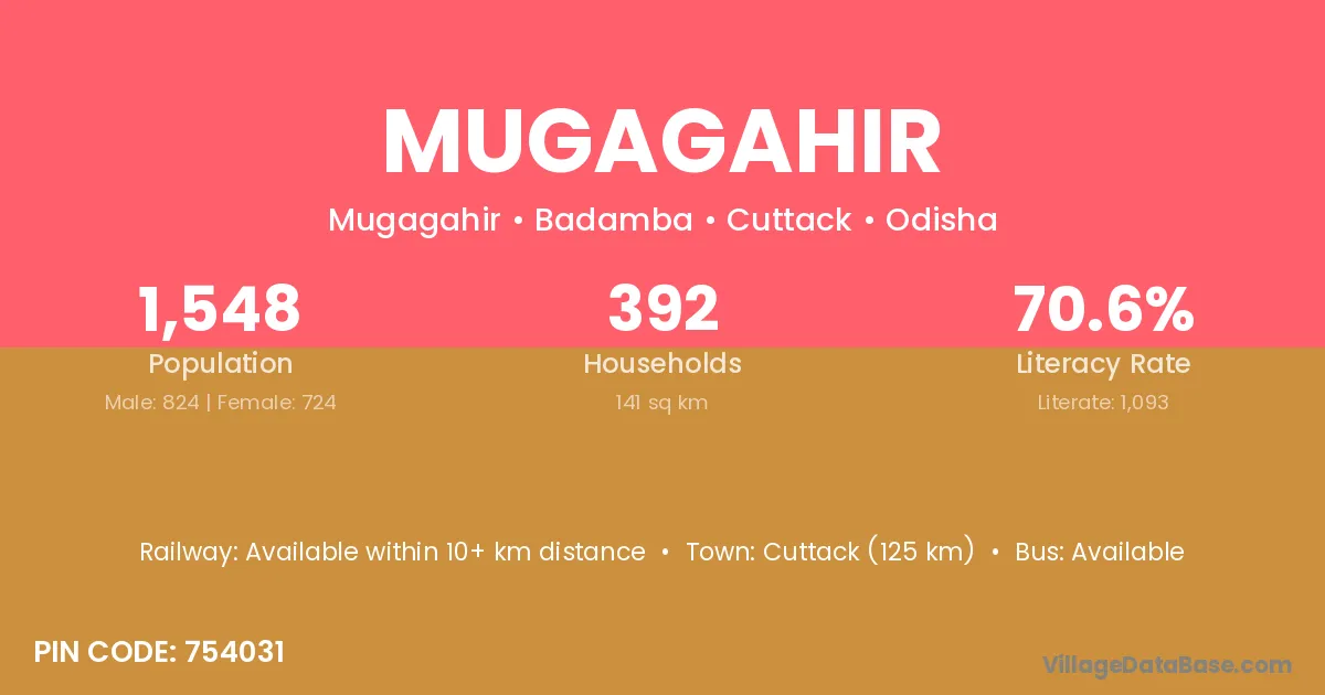 Cuttack (125 km) is the nearest town to Mugagahir village for major economic activities and is located approximately 125 km away.