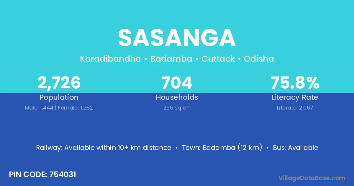 Badamba (12 km) is the nearest town to Sasanga village for major economic activities and is located approximately 12 km away.