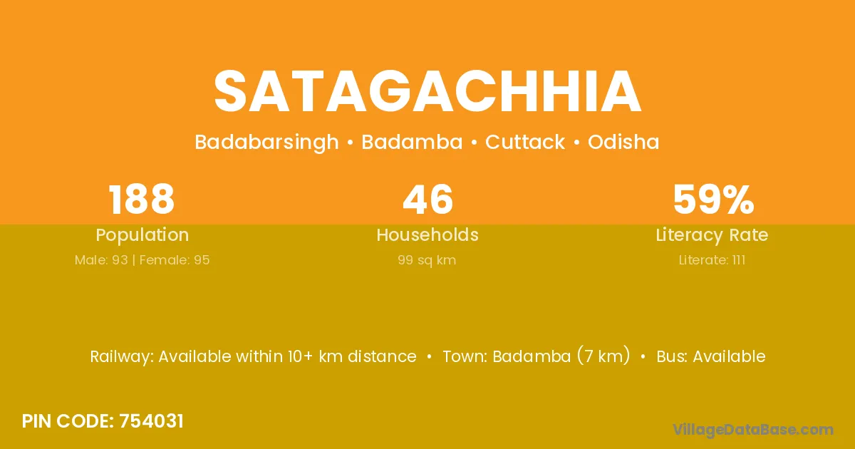 Badamba (7 km) is the nearest town to Satagachhia village for major economic activities and is located approximately 7 km away.