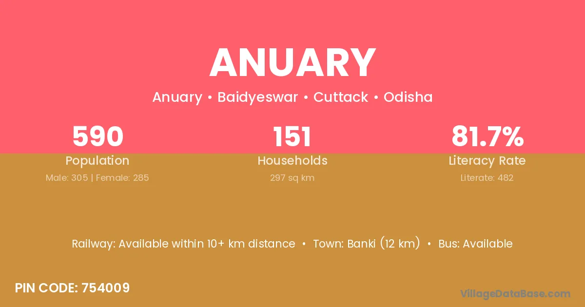 Anuary village has a total population of 590 people, of which 305 are males and 285 are females.