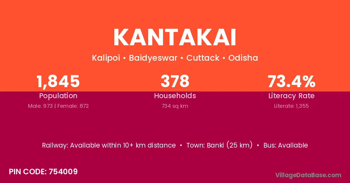 Banki (25 km) is the nearest town to Kantakai village for major economic activities and is located approximately 25 km away.