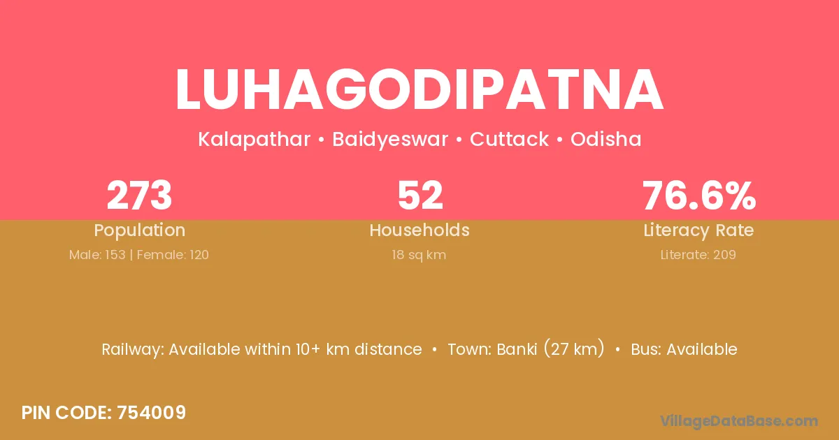 Luhagodipatna village has a total population of 273 people, of which 153 are males and 120 are females.