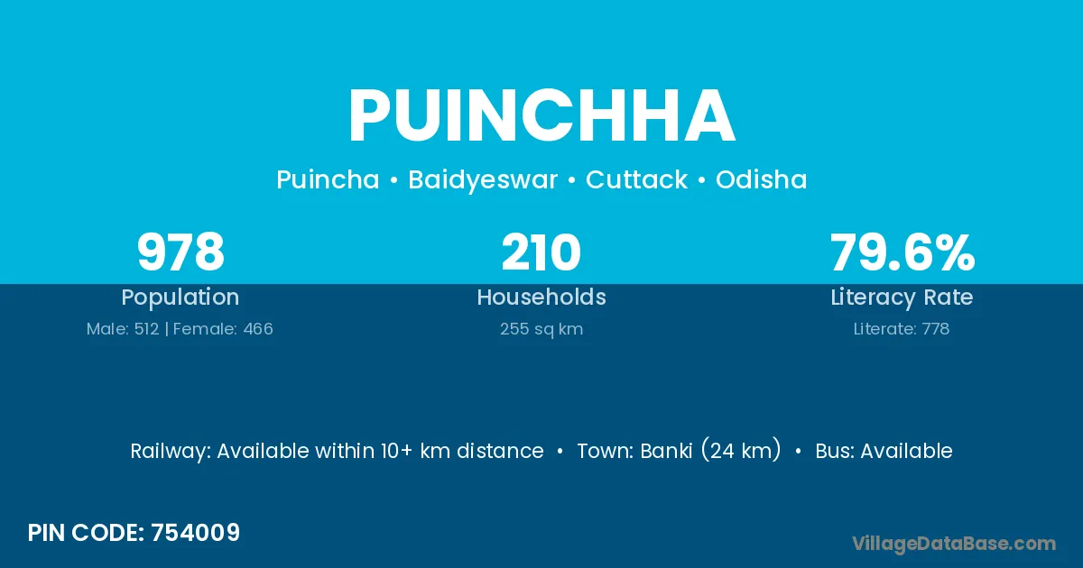 Puinchha village has a total population of 978 people, of which 512 are males and 466 are females.