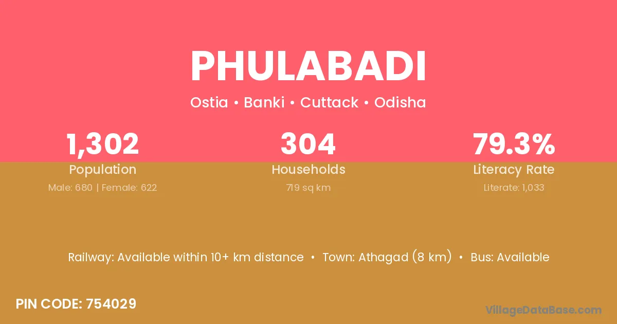 Athagad (8 km) is the nearest town to Phulabadi village for major economic activities and is located approximately 8 km away.