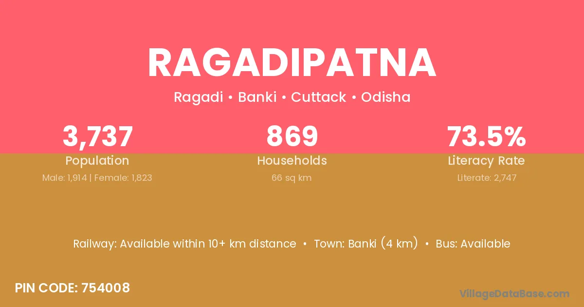 Banki (4 km) is the nearest town to Ragadipatna village for major economic activities and is located approximately 4 km away.