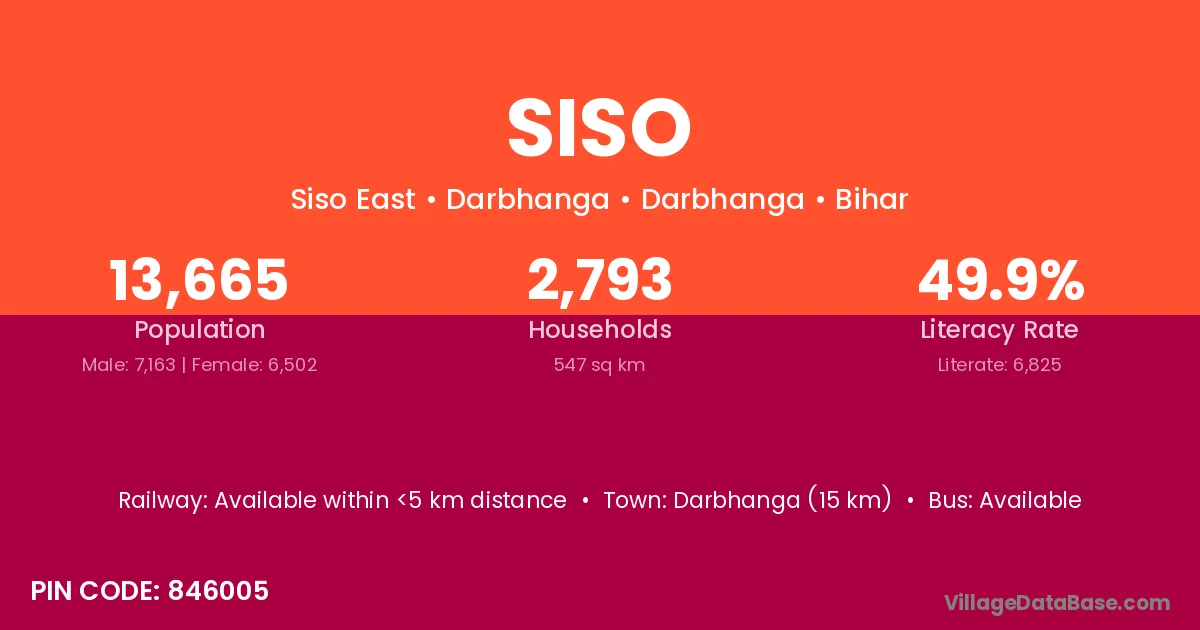 The literacy rate of Siso village is 74.33%. Male literacy stands at 83.33% and female literacy at 64.26%.