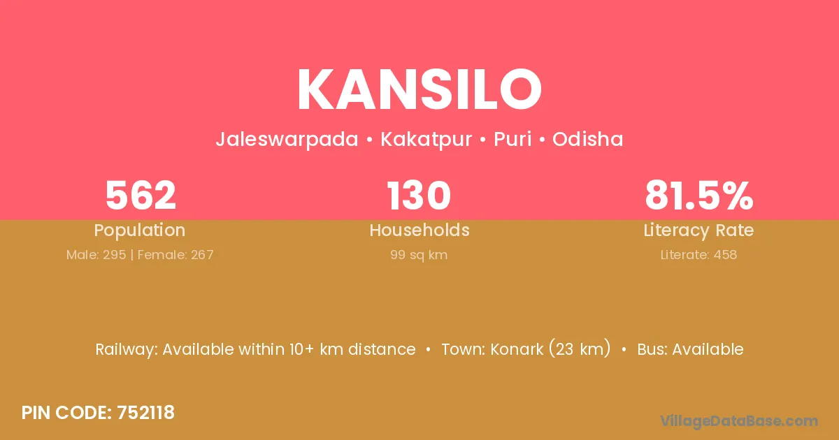 Cuttack (38 km) is the nearest town to Kansilo village for major economic activities and is located approximately 38 km away.