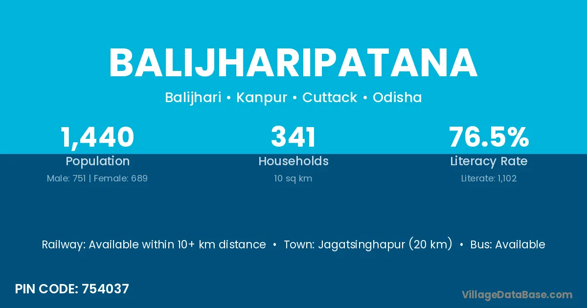 Balijharipatana village has a total population of 1,440 people, of which 751 are males and 689 are females.