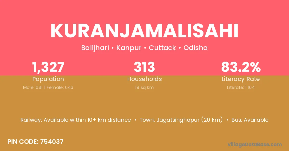 Kuranjamalisahi village has a total population of 1,327 people, of which 681 are males and 646 are females.