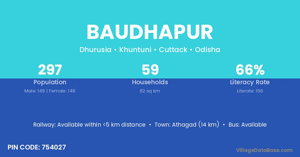 Athagad (14 km) is the nearest town to Baudhapur village for major economic activities and is located approximately 14 km away.
