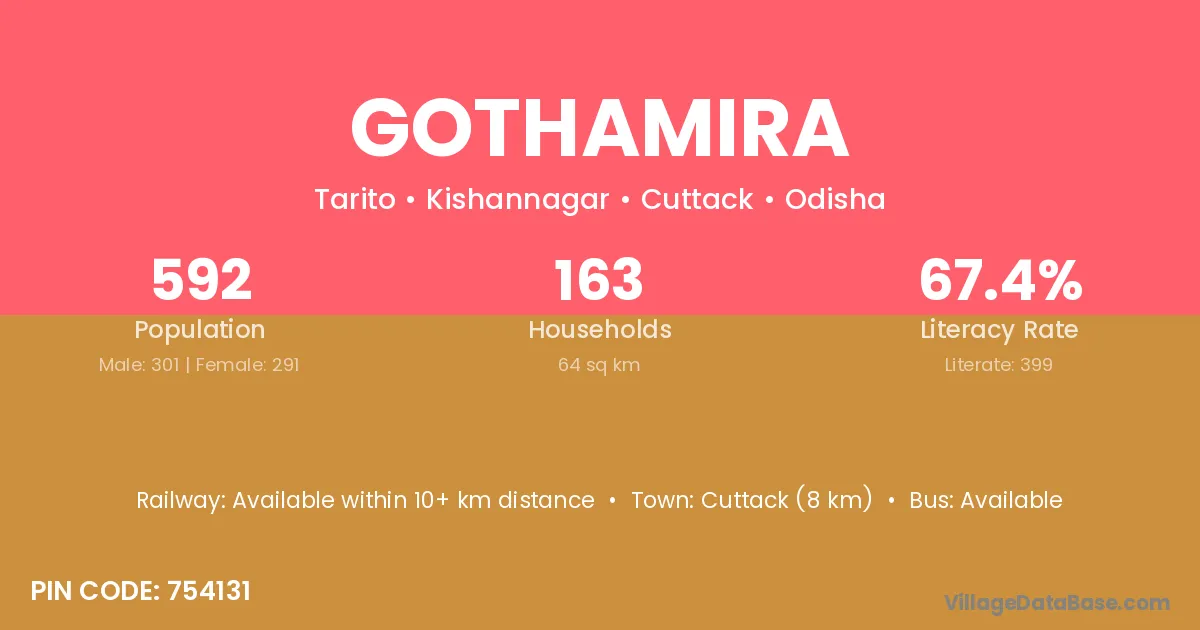 Gothamira village has a total population of 592 people, of which 301 are males and 291 are females.
