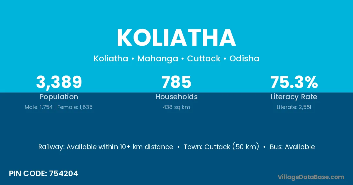 Cuttack (50 km) is the nearest town to Koliatha village for major economic activities and is located approximately 50 km away.