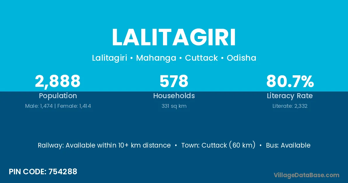 There are approximately 578 households in Lalitagiri village.