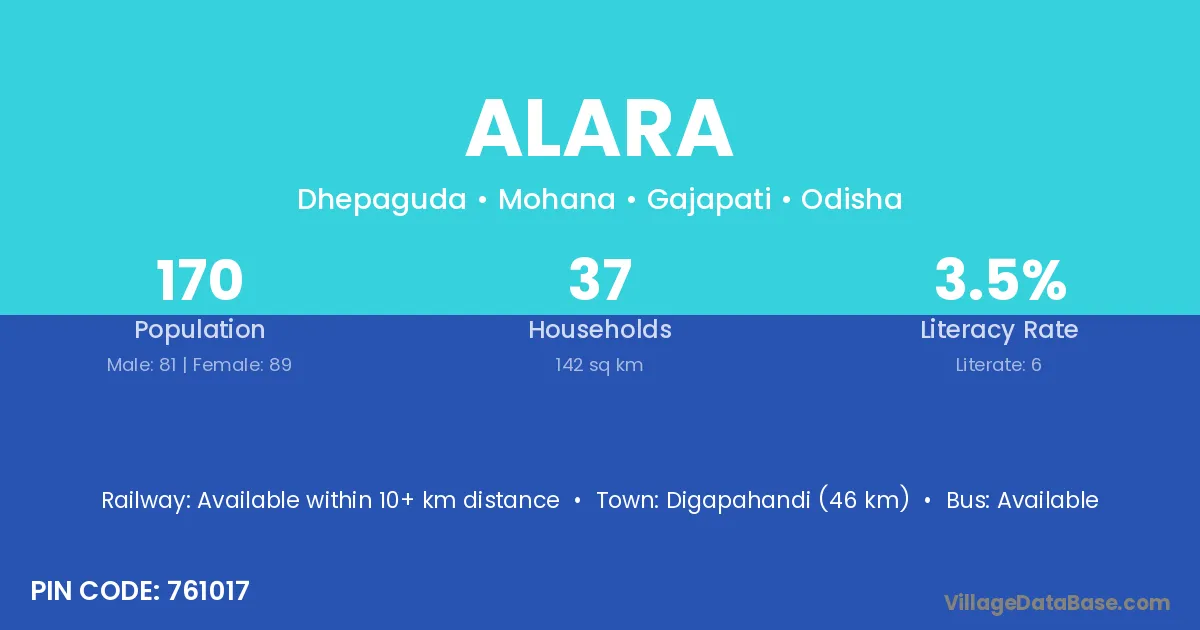 Jagatsinghapur (3 km) is the nearest town to Alara village for major economic activities and is located approximately 3 km away.