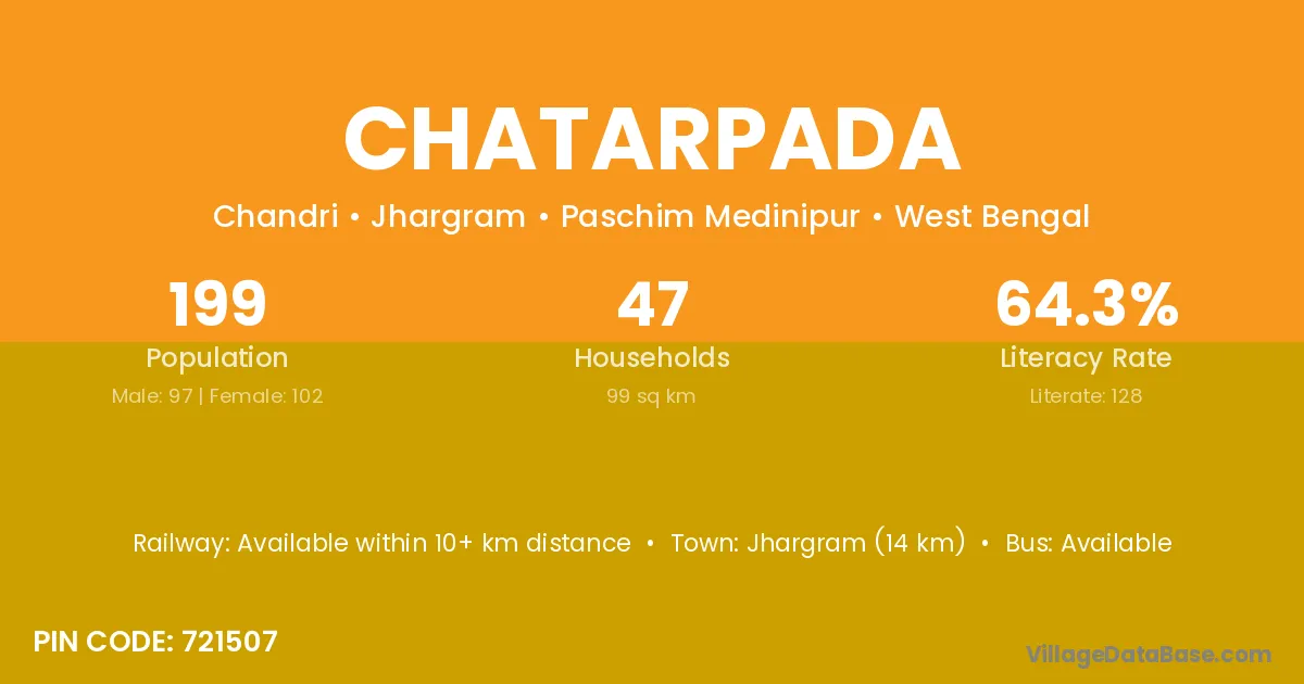 Jagatsinghapur (8 km) is the nearest town to Chatarpada village for major economic activities and is located approximately 8 km away.