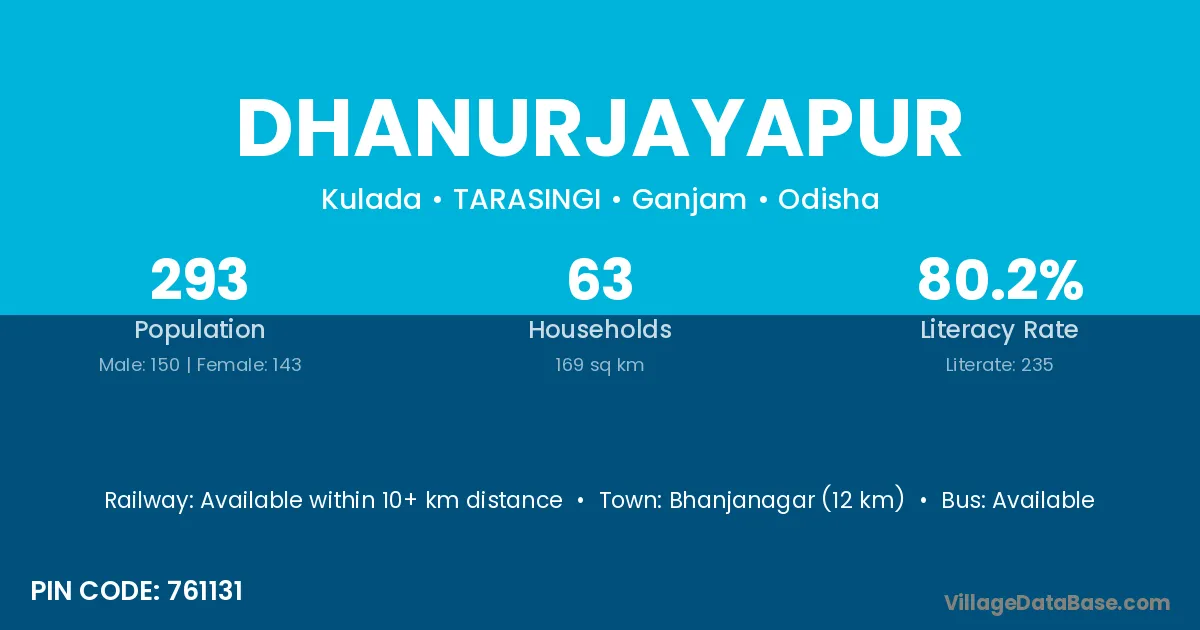 Jagatsinghapur (22 km) is the nearest town to Dhanurjayapur village for major economic activities and is located approximately 22 km away.