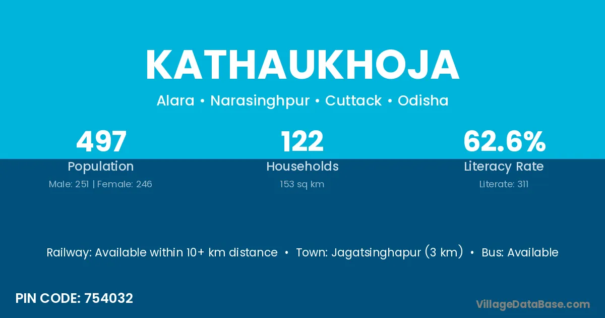 Jagatsinghapur (3 km) is the nearest town to Kathaukhoja village for major economic activities and is located approximately 3 km away.