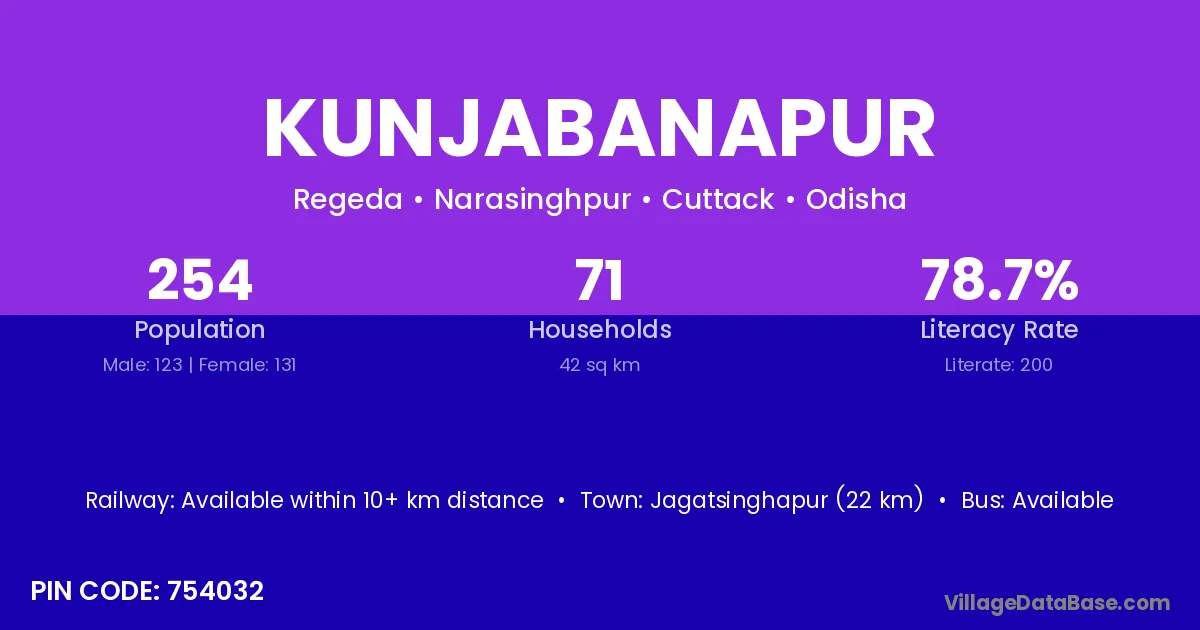 Kunjabanapur village has a total population of 254 people, of which 123 are males and 131 are females.