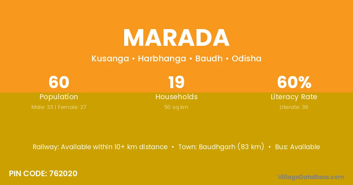 Cuttack (35 km) is the nearest town to Marada village for major economic activities and is located approximately 35 km away.