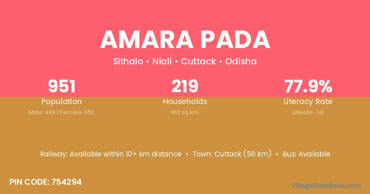 Amara Pada village has a total population of 951 people, of which 499 are males and 452 are females.