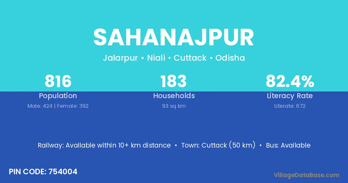 Cuttack (50 km) is the nearest town to Sahanajpur village for major economic activities and is located approximately 50 km away.