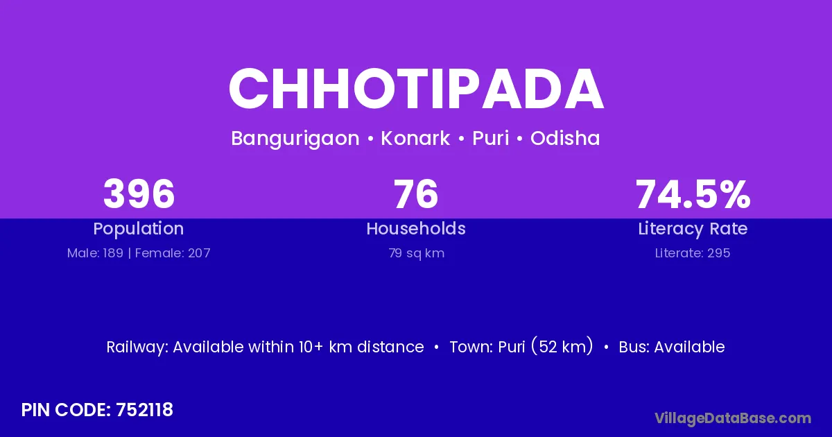 There are approximately 222 households in Chhotipada village.