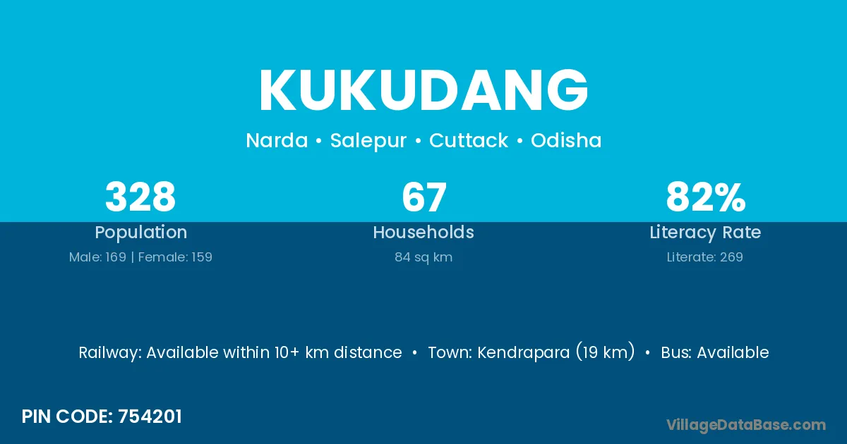Kendrapara (19 km) is the nearest town to Kukudang village for major economic activities and is located approximately 19 km away.