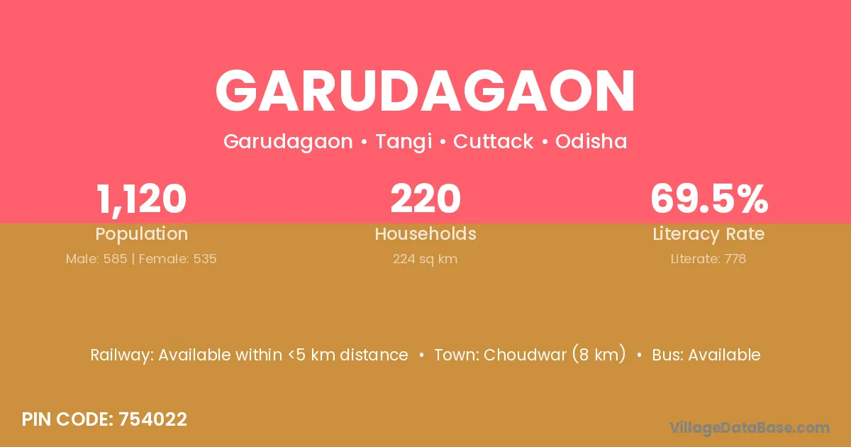 Choudwar (8 km) is the nearest town to Garudagaon village for major economic activities and is located approximately 8 km away.