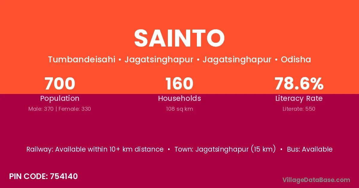 Choudwar (6 km) is the nearest town to Sainto village for major economic activities and is located approximately 6 km away.