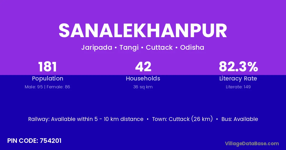 Cuttack (26 km) is the nearest town to Sanalekhanpur village for major economic activities and is located approximately 26 km away.