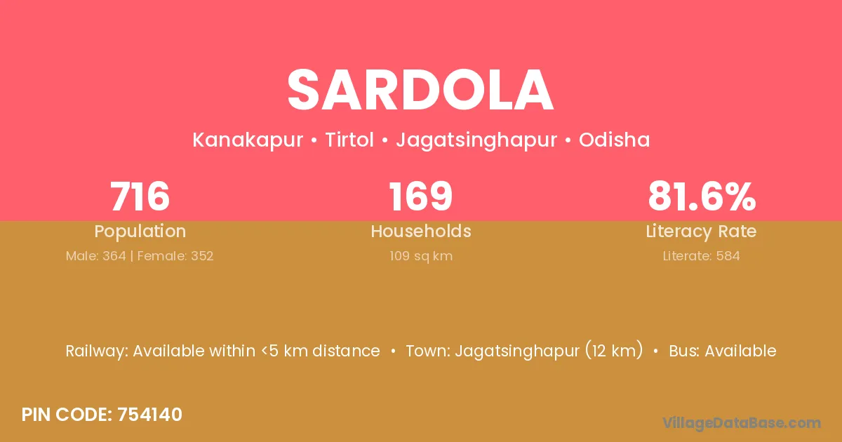 According to Census 2011 information, the village code of Sardola village is 754025.