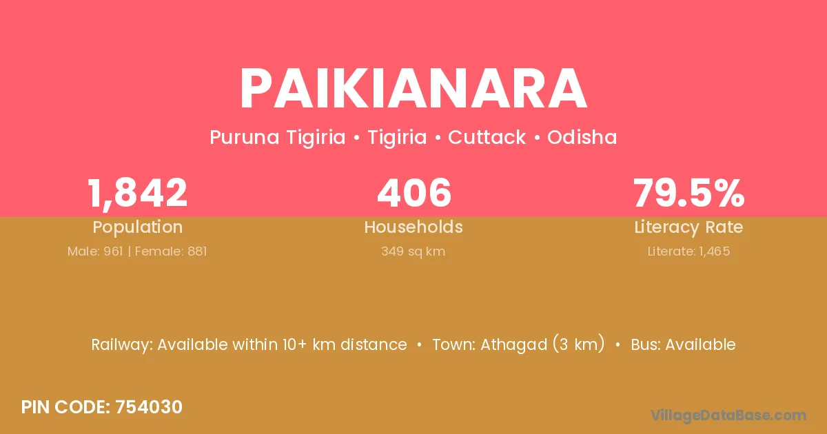Athagad (3 km) is the nearest town to Paikianara village for major economic activities and is located approximately 3 km away.