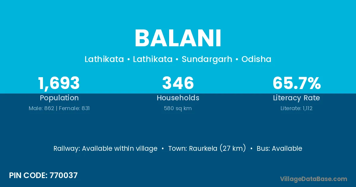 Debagarh (37 km) is the nearest town to Balani village for major economic activities and is located approximately 37 km away.