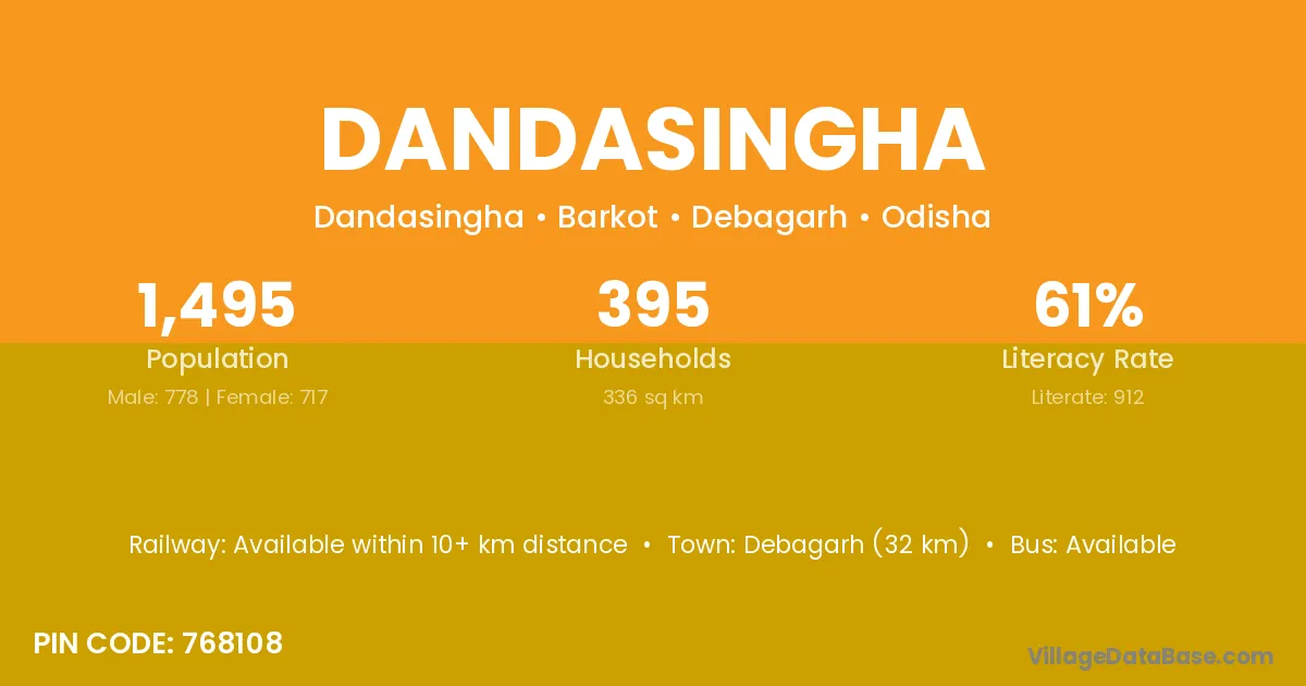 Debagarh (32 km) is the nearest town to Dandasingha village for major economic activities and is located approximately 32 km away.